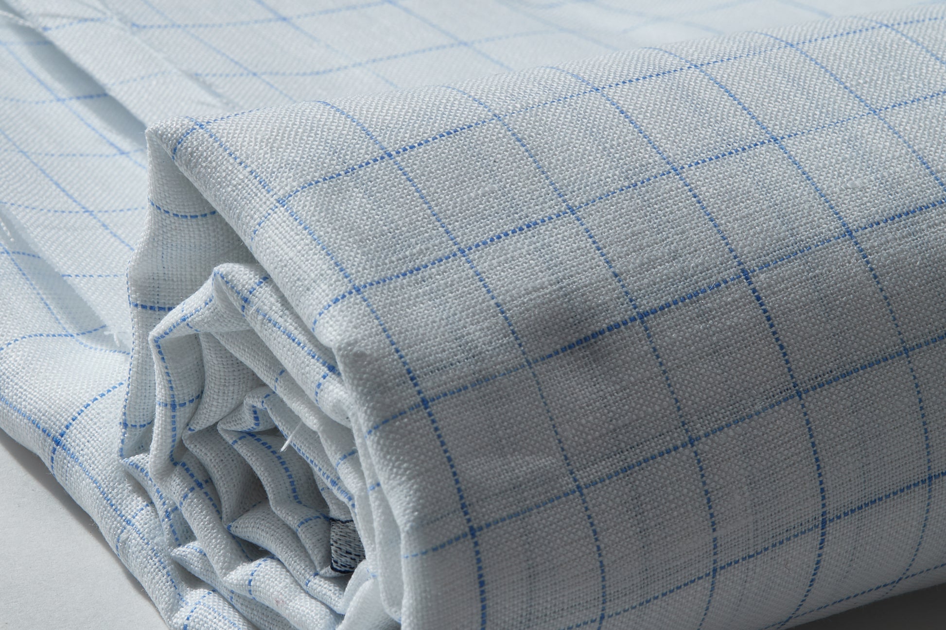 100% Linen, Yarn Dyed, Plain,White And Blue Men And Women, Unstitched Shirting Or Top Fabric