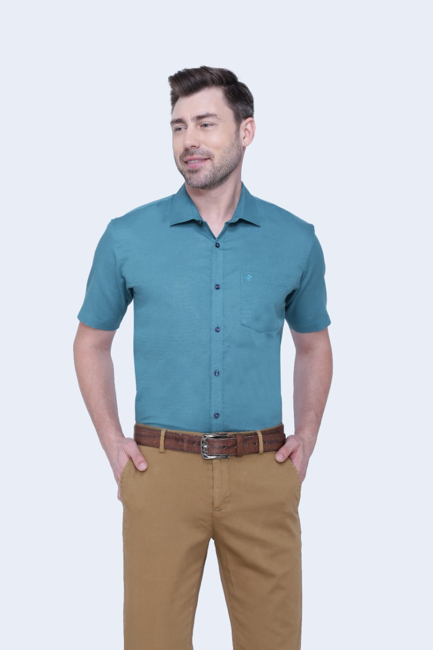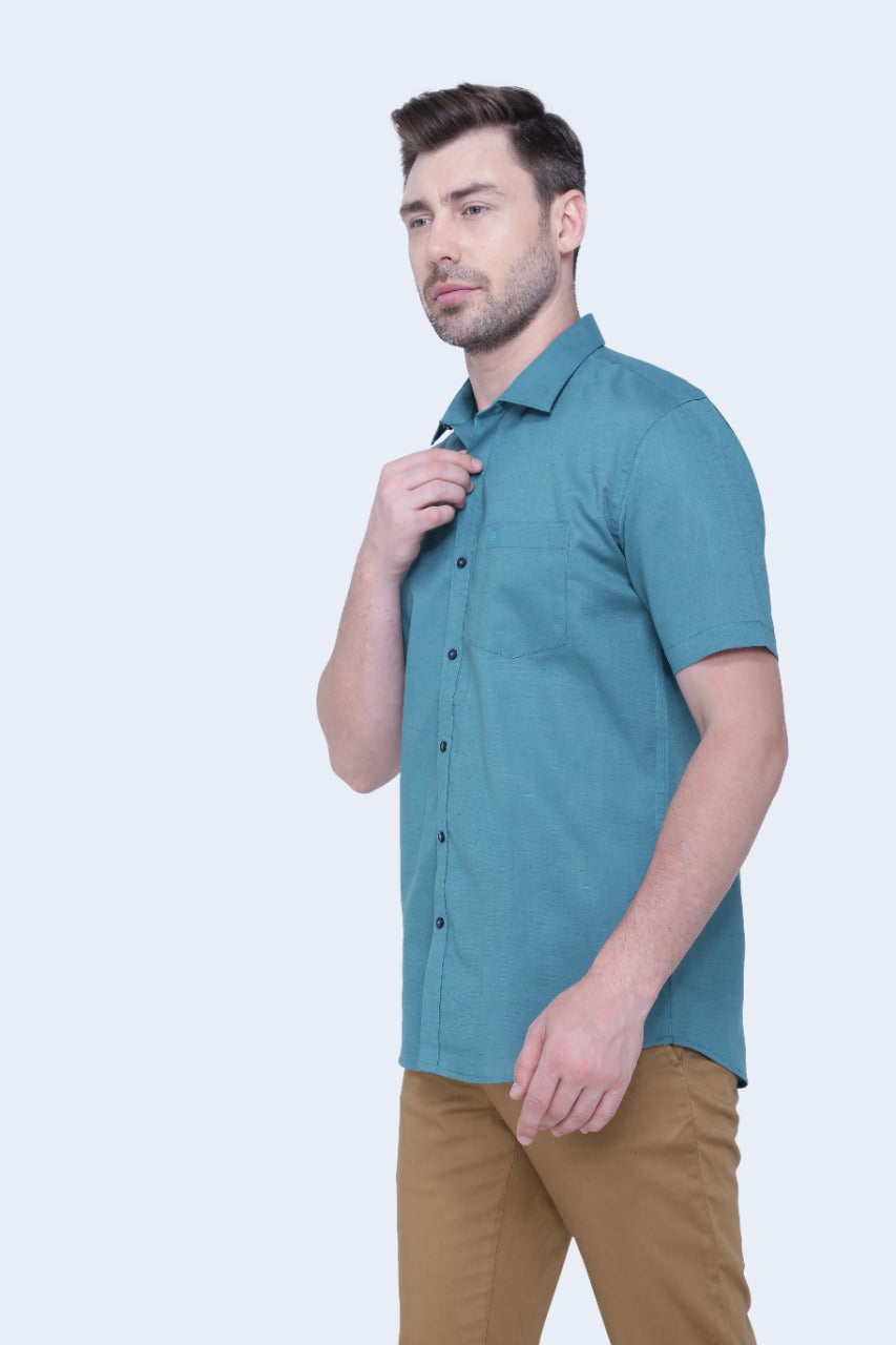 Linen Cotton Blend,Piece Dyed,Plain, Half Sleeves,Semi Slim Fit,Lavender, Men,Shirt