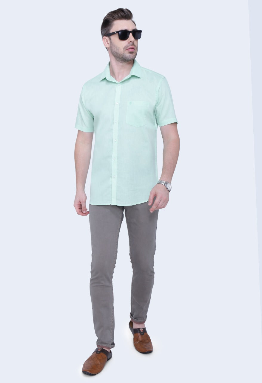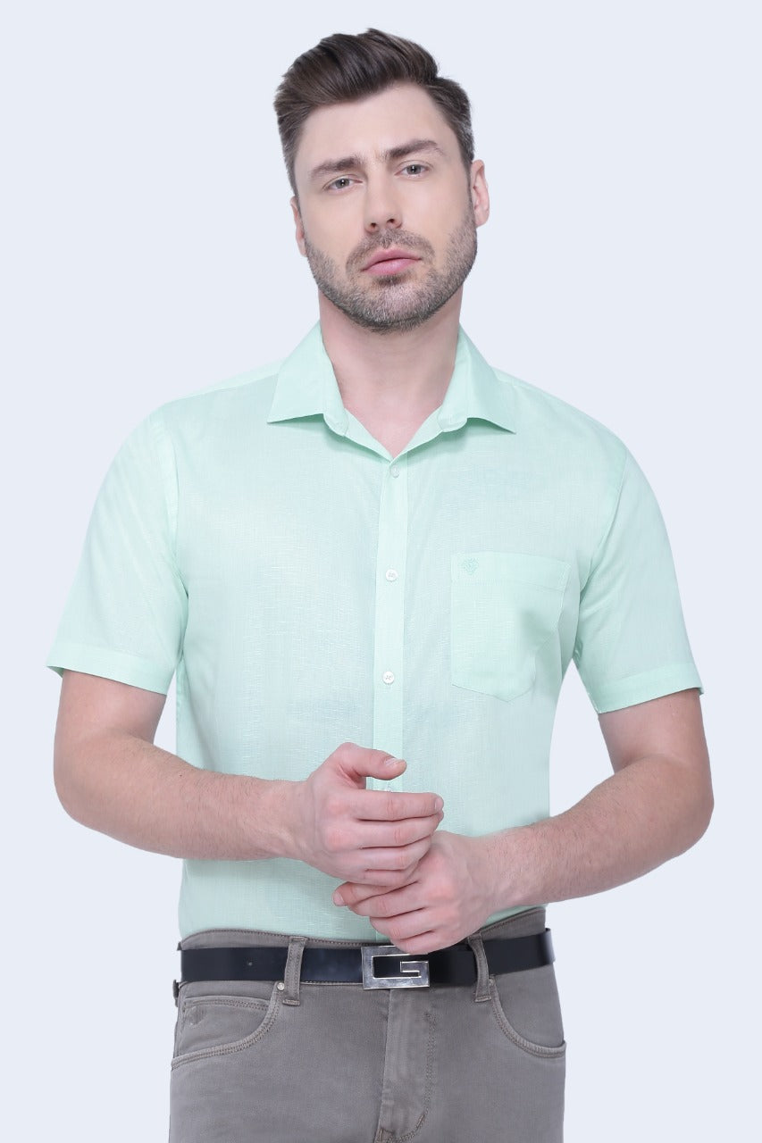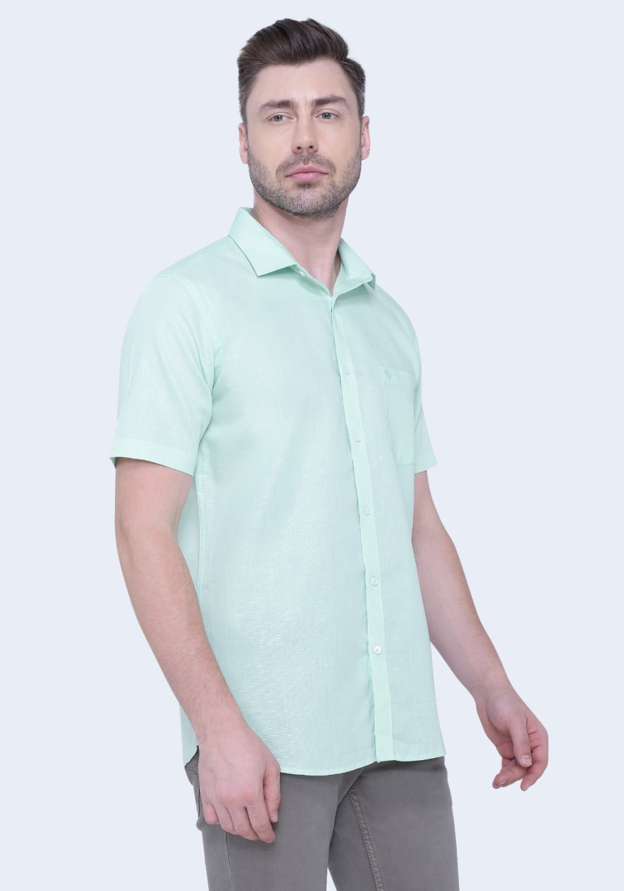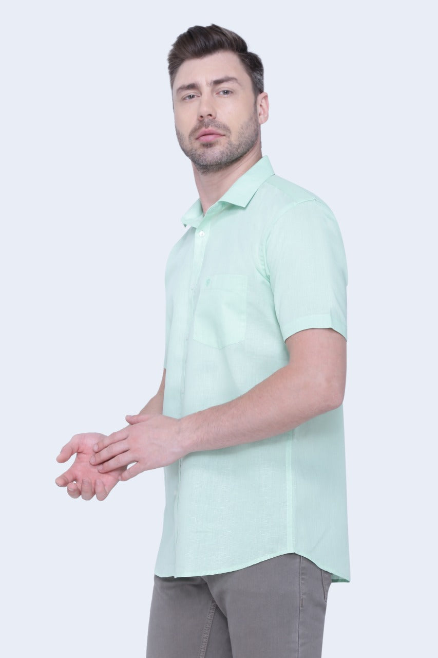 Linen Cotton Blend,Piece Dyed,Plain, Half Sleeves,Semi Slim FitMint, Men,Shirt