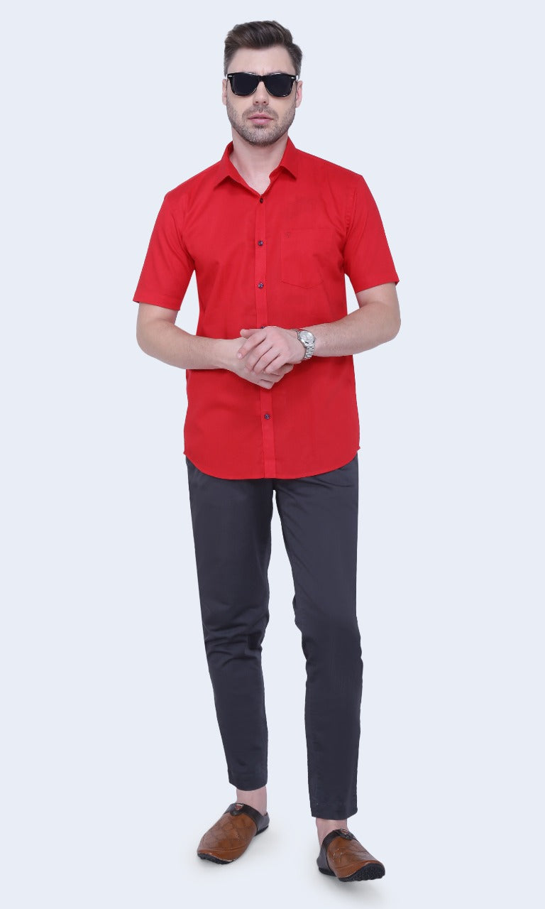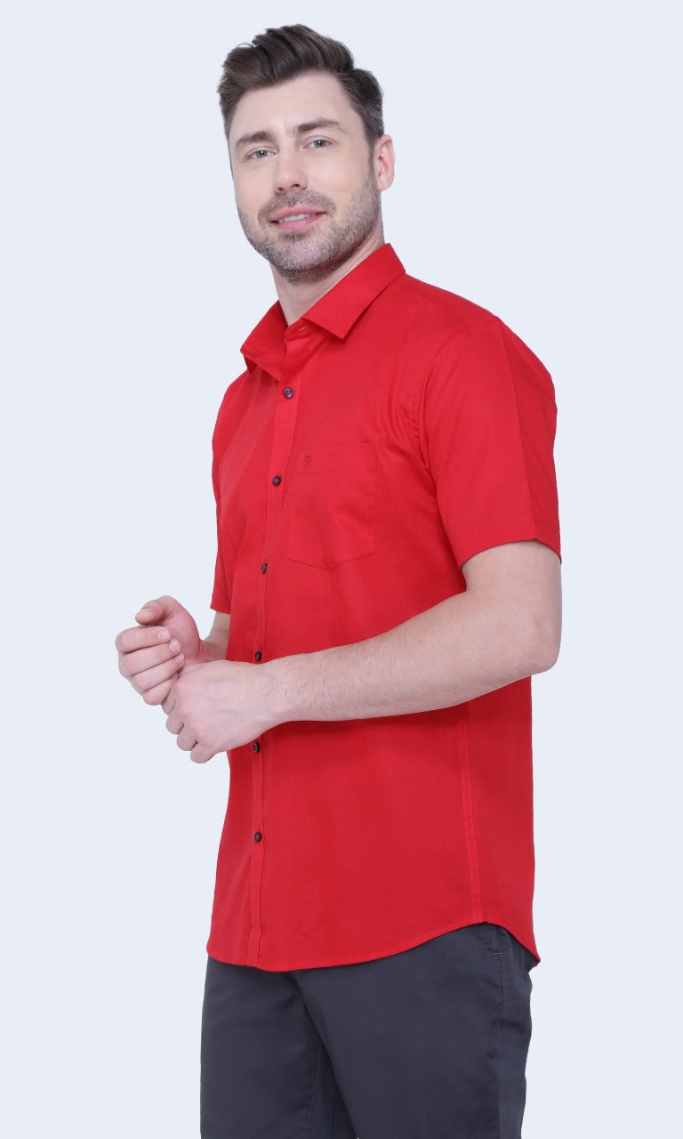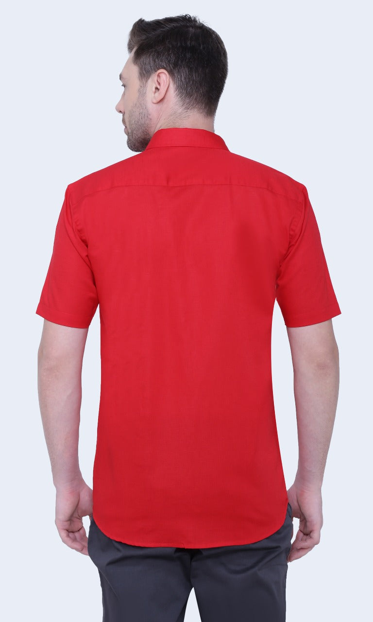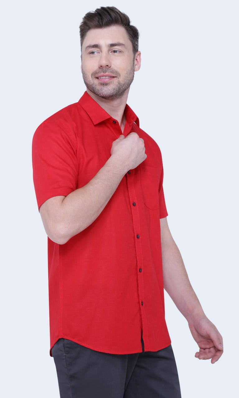 Linen Cotton Blend,Piece Dyed,Plain, Half Sleeves,Semi Slim FitDark Red, Men,Shirt